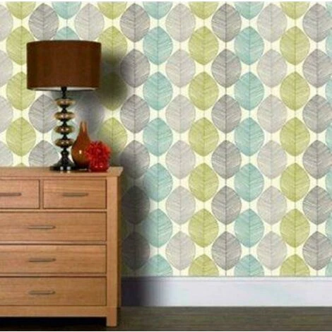Arthouse Retro Leaf Teal Wallpaper 408207Features a geometric leaf print in a striking teal blue and green colour scheme with undertones of taupeSmooth, flat finishPaste the paperOffset match, pattern match: 53cmSpongeable, good lightfastness, wet removableEach roll measures 10m x 0.53mAll rolls ordered together will be the same batch number