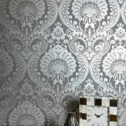ARTHOUSE Velvet Crush Foil Metallic Silver Wallpaper Shimmer Leaf Motif Textured Vinyl