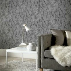 Carrara Marble Effect Wallpaper Arthouse Silver Charcoal Grey Glitter Vinyl