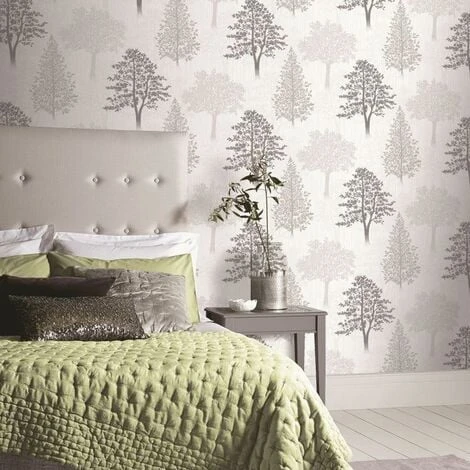 Add a touch of nature to your living space with this gorgeous wallpaper from Arthouse. This design features a lovely diamond tree print in Silver and Grey tones set on a smooth paper for a truly contemporary wallcovering.